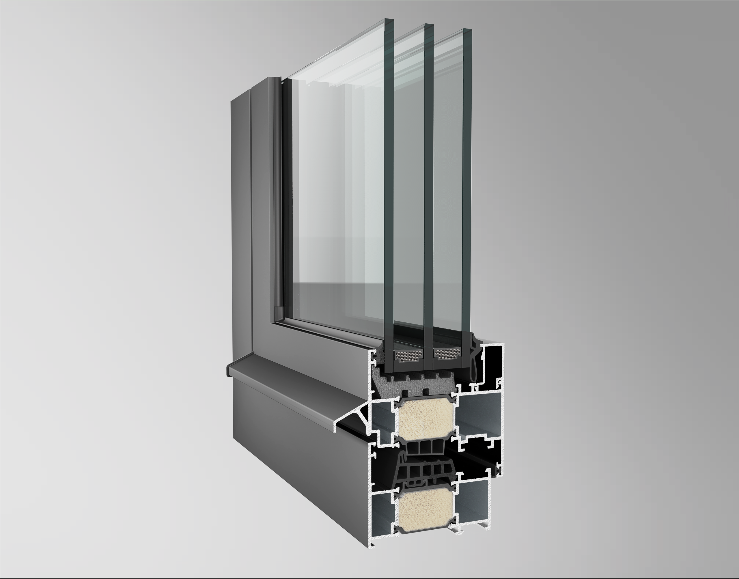 Продолжительный срок службы конструкции. Высокая коррозионная стойкость (50 и более лет). Интенсивная эксплуатация без необходимости регулировки фурнитуры. Повышенная стойкость покрытия к выцветанию и выгоранию.