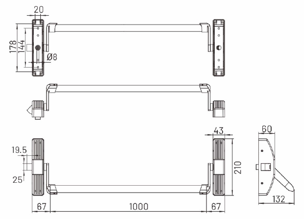 Горизонтальная планка из широкого профиля овального сечения шириной всего 32 мм;