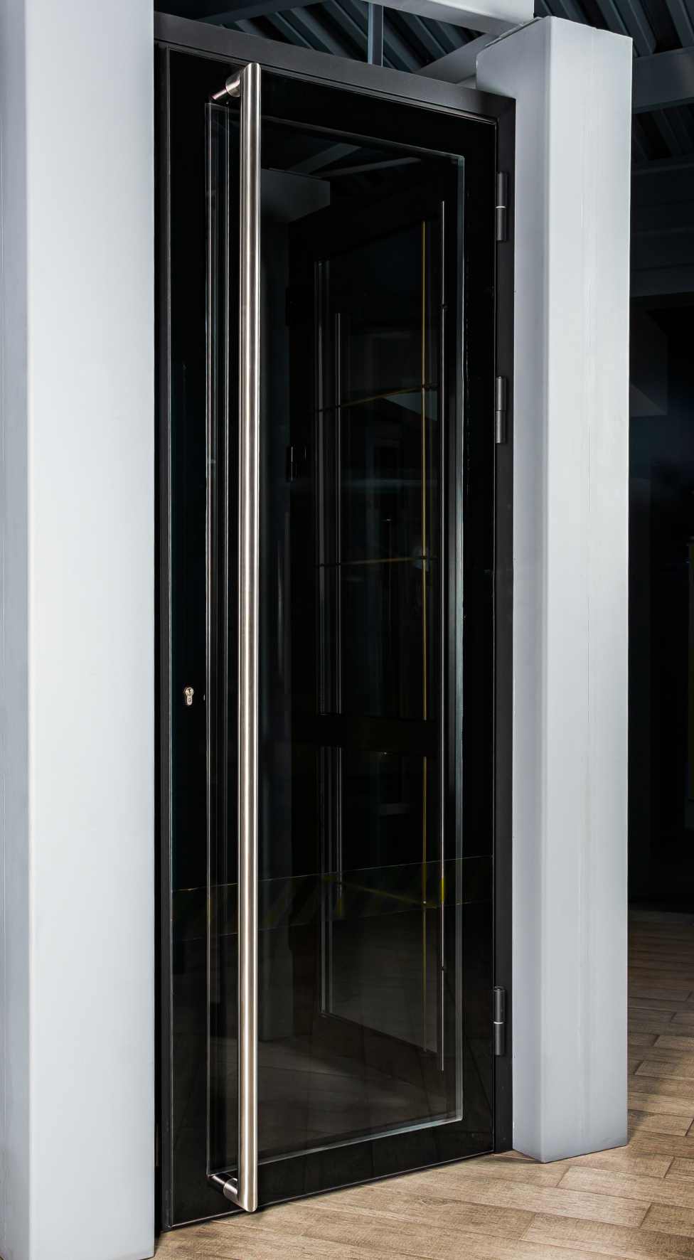 Модель во всю створку двери: Протяженность 2000-3000 мм создает выразительный горизонтальный акцент и обеспечивает эргономичное использование по всей ширине дверного полотна.