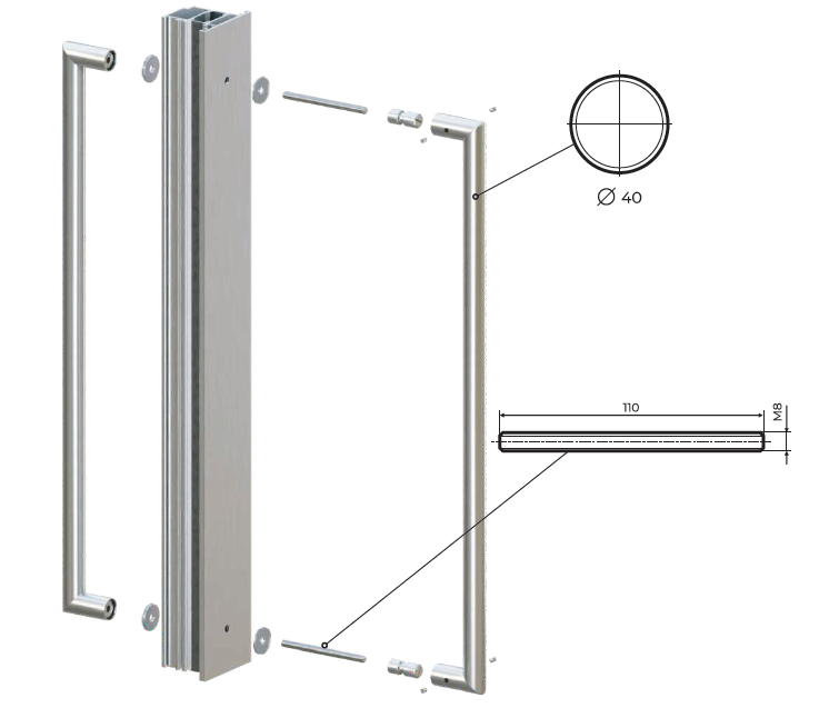 Идеально для объектов с высокой проходимостью: Шлифованная сталь AISI 304 устойчива к механическим воздействиям, коррозии и сохраняет безупречный вид при интенсивной ежедневной эксплуатации.
