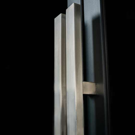 Оригинальный массивный внешний вид: Мощный профиль и шлифованная поверхность создают выразительный акцент на дверном полотне. Строгий дизайн добавляет интерьеру солидности и завершенности.