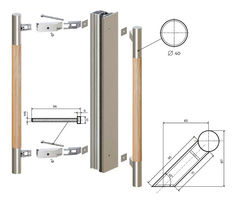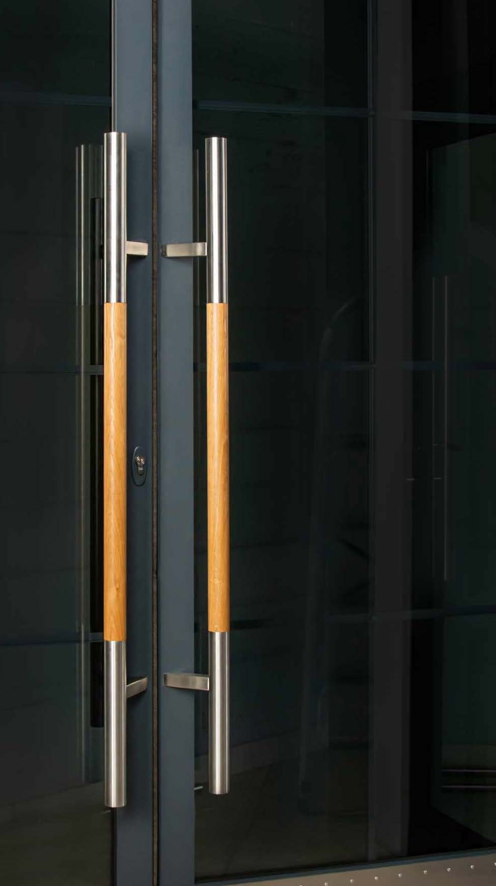 Цельный поручень — бесшовная линия по всей высоте двериУсиленные кронштейны — скрытый монтаж для чистого силуэта