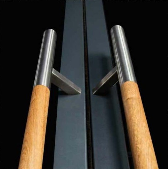 Презентабельный внешний вид: Монолитная конструкция "во всю дверь" и контраст материалов придают интерьеру солидность и завершенность. Это не просто фурнитура, а акцентный элемент дизайна.