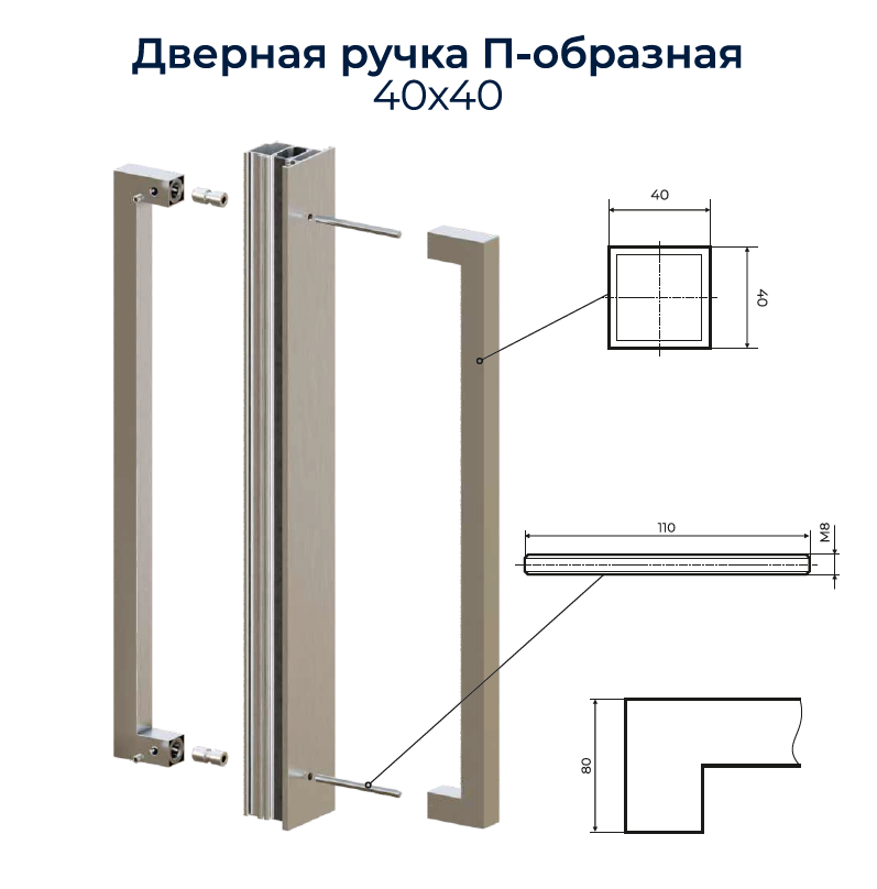 Дверная ручка Эксклюзив П-образная 40×40